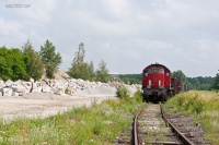 TEM2-063 ciągnie próżne talboty z elektrowni Pątnów do Konina gdzie przejmie je lokomotywa elektryczna.