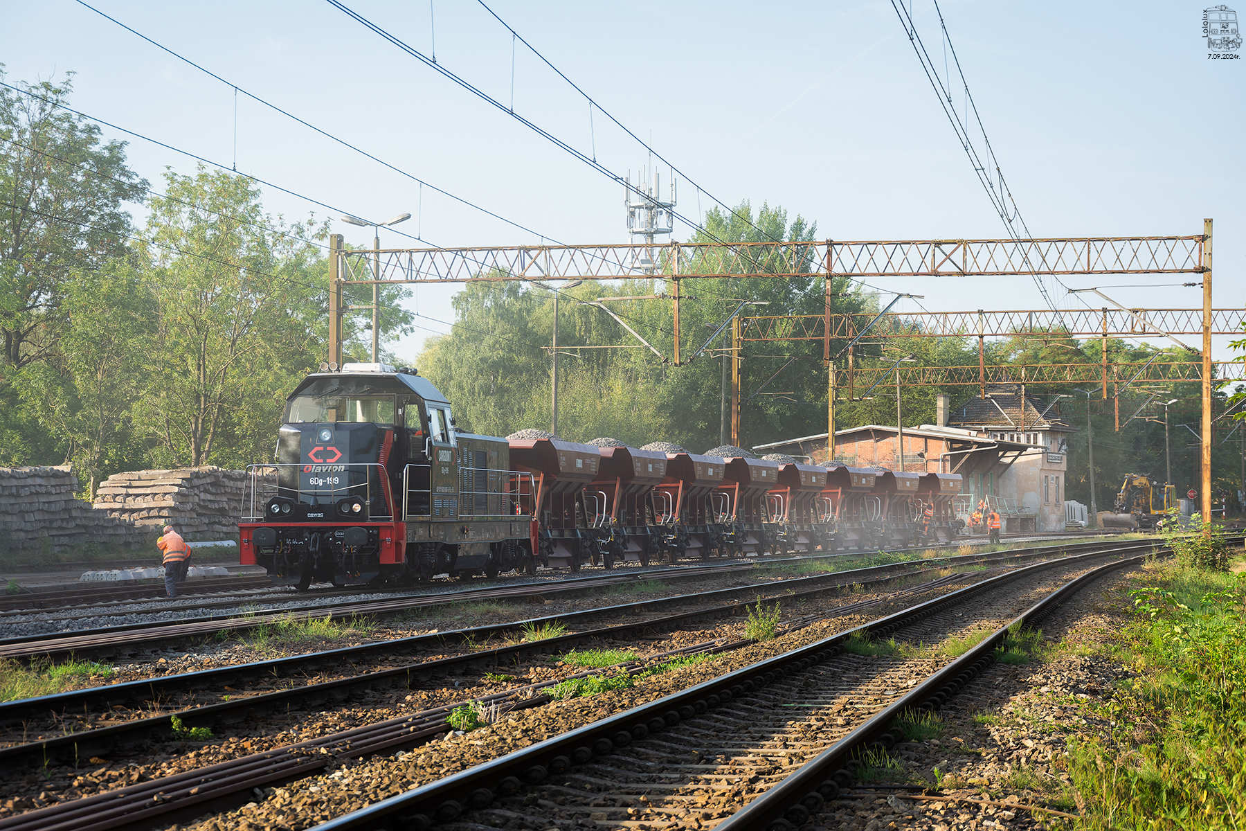 Od jakiegoś czasu na towarowej części stacji Gocławia trwa remont dwóch torów dodatkowych. Trochę szkoda, ponieważ były to dwa najbardziej zarośnięte tory na stacji, więc na pewno dodawały klimatu, aczkolwiek SKM'ka coraz bliżej, więc coś koniec końców musi iść do przodu. Spośród X4EC DB oraz Knedla CTLu, to stacjonująca tego ranka 6Dg-199 Cargounitu, dzierżawiona przez Olavion była najciekawsza, a to z uwagi na całkiem widowiskowe rozsypywanie tłucznia pod remontowany tor. Pierwszy raz udało mi się takie coś uchwycić na obiektywie, i bez wątpienia były duże dymy ;)