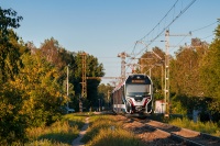 W pięknym jesiennym anturażu, EN100-04 w drodze z Warszawy do Grodziskach Mazowieckiego, zbliża się do przystanku Kazimierówka. Obecnie to miejsce wygląda zupełnie inaczej, są tu dwa tory.