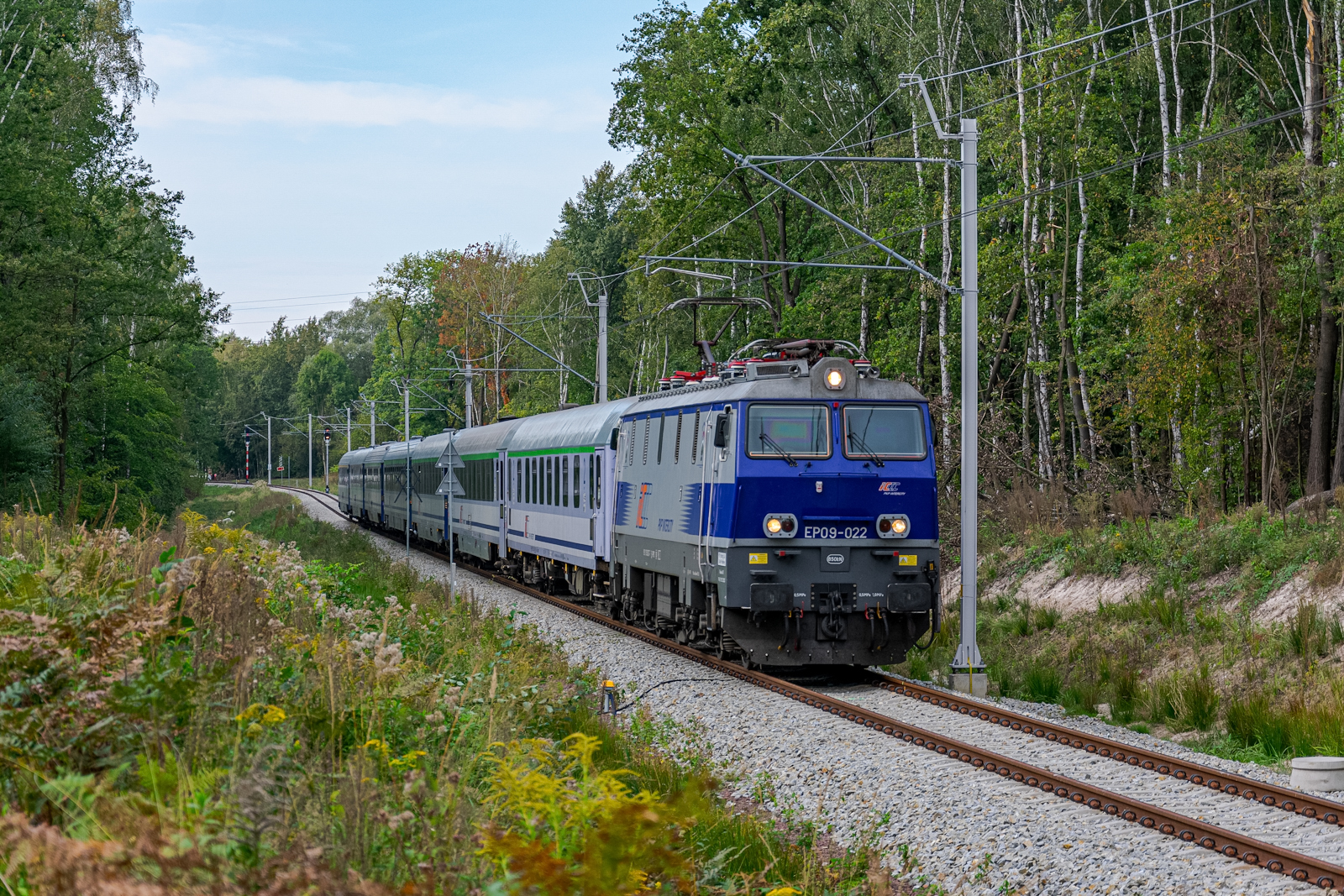 Epoka z objazdowym pociągiem IC 6302 Siemiradzki rel. Wrocław Główny - Przemyśl Główny jedzie szlakiem podg Katowice Ochojec - Katowice Muchowiec KMB w stronę podg Stawiska.