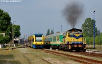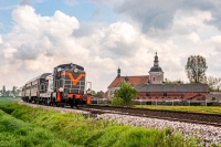 Wrocławski kociołek rozpędza się z pociągiem specjalnym "Semafor" relacji Rokitki - Legnica po opuszczeniu stacji początkowej. Uruchomiony przez KSK Wrocław skład mija rozwidlenie berlinki i D29-316 w miejscu, gdzie dawniej przy tej drugiej linii funkcjonował przystanek Zamienice. Widoczny pociąg pokonał trasę Wrocław - Legnica - Rokitki - Legnica - Wrocław z okazji 180-lecia uruchomienia kolei Dolnośląsko-Marchijskiej z Wrocławia do Legnicy. Otwarcie nastąpiło dokładnie 19 października 1844 roku. Było to ukończenie pierwszego etapu budowy linii kolejowej łączącej ówczesny Breslau ze stolicą Prus, Berlinem.