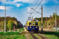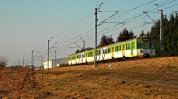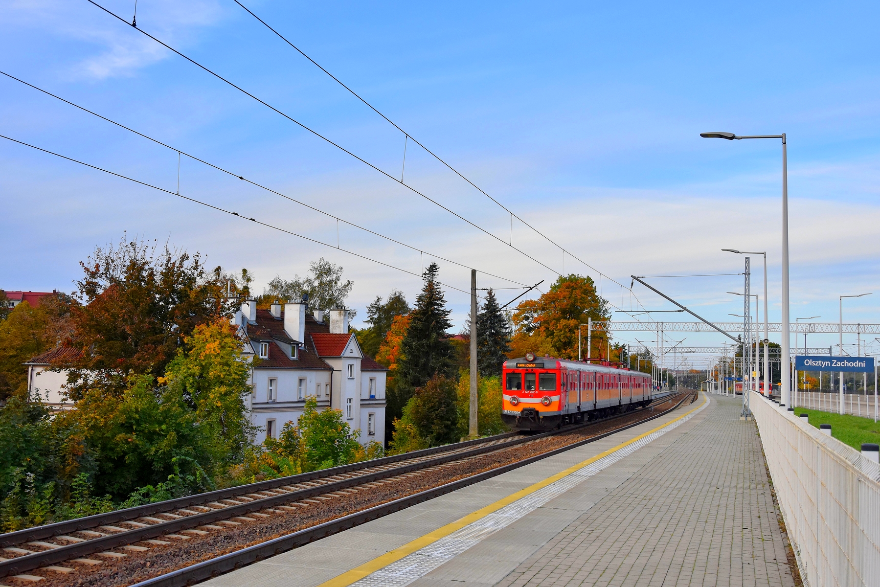 Do peronu przystanku Olsztyn Zachodni zbliża się jesiennym porankiem EN57-1356, jako pociąg osobowy rel. Olsztyn Główny - Iława Główna.