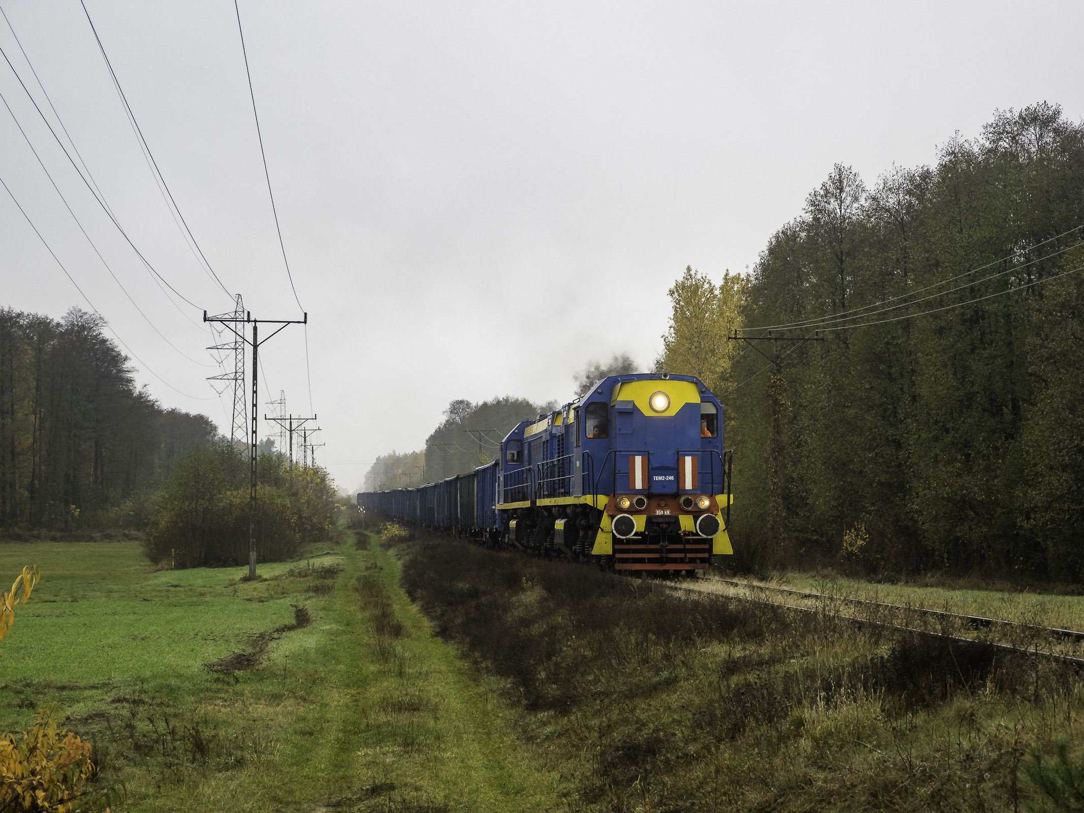 TEM2-246 wraz z TEM2-247 prowadzą ładowny skład węglarek z stacji w Raciążu do cukrowni w Glinojecku.