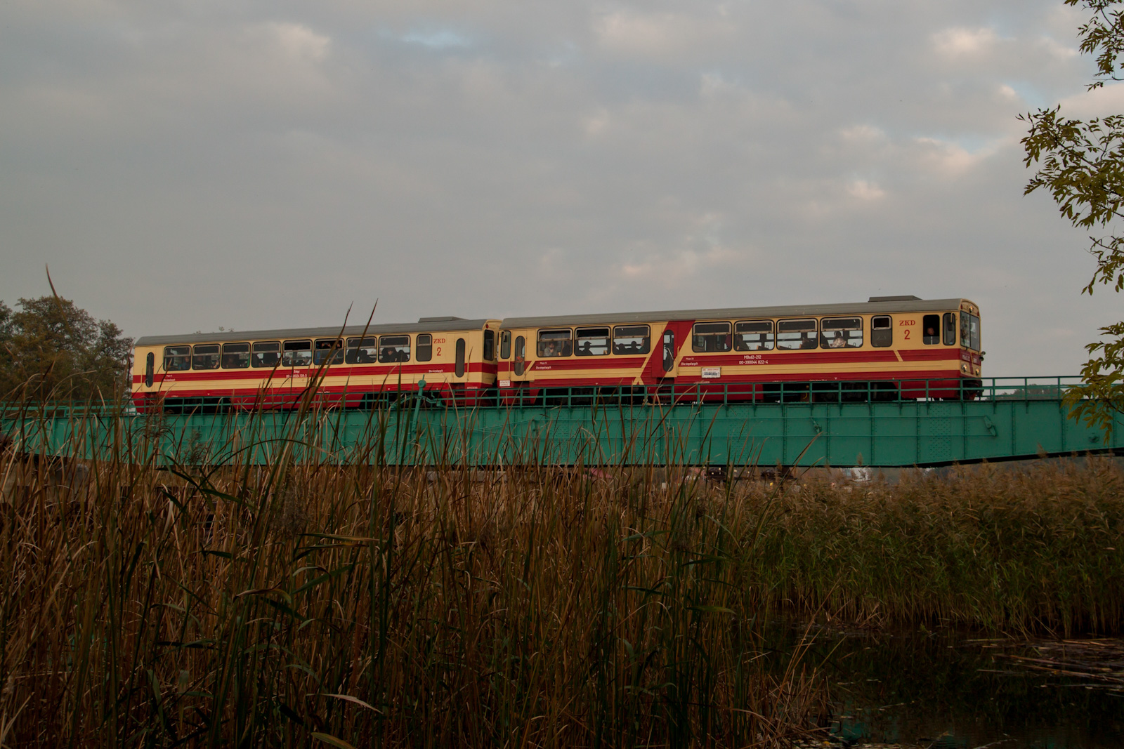 MBxd2-212 wraz z wagonem doczepnym jako pociąg specjalny do Nowego Dworu Gdańskiego przejeżdżając przez most obrotowy w Rybinie.