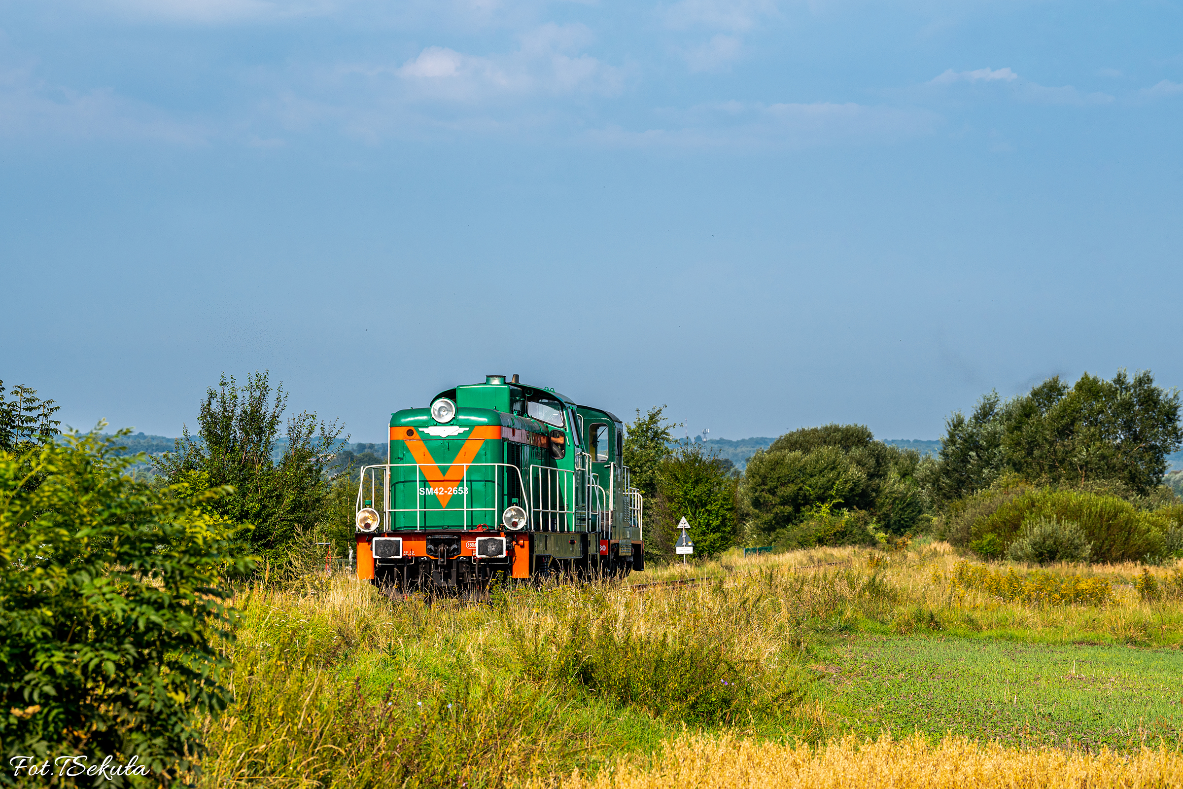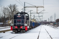 Duet przedstawiony na poprzedniej fotografii wraca luzem na teren zakładu, strzygąc trawnik rosnący na torowisku.