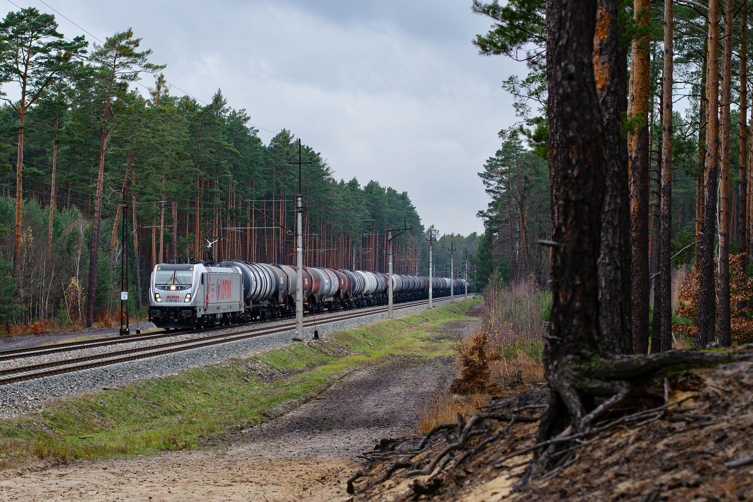 Traxx trzeciej generacji prowadzi skład beczek opuszczając stację Łętownia obierając za cel stację Nowa Sarzyna kierując się na Przeworsk