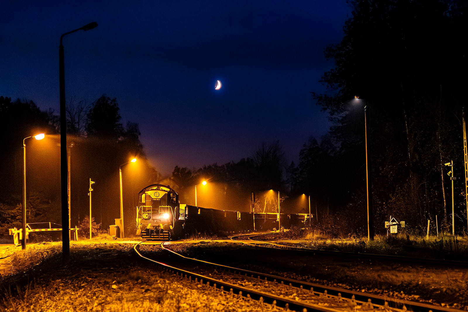 SM48-068 podczas powrotu z wieczornego zwału mija przejazd kolejowo-drogowy na ul. Zwycięstwa