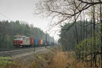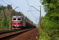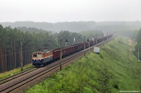 Skoda ze składem beczek zbliża sie do Osiecka jadąc esełką na zachód.