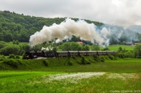 Parowozy 52 8079-7 oraz 41 1144-9 z pociągiem powrotnym z Parady Parowozów opuszcza Wolsztyn kierując się do Zbąszynia i dalej w kierunku Niemiec