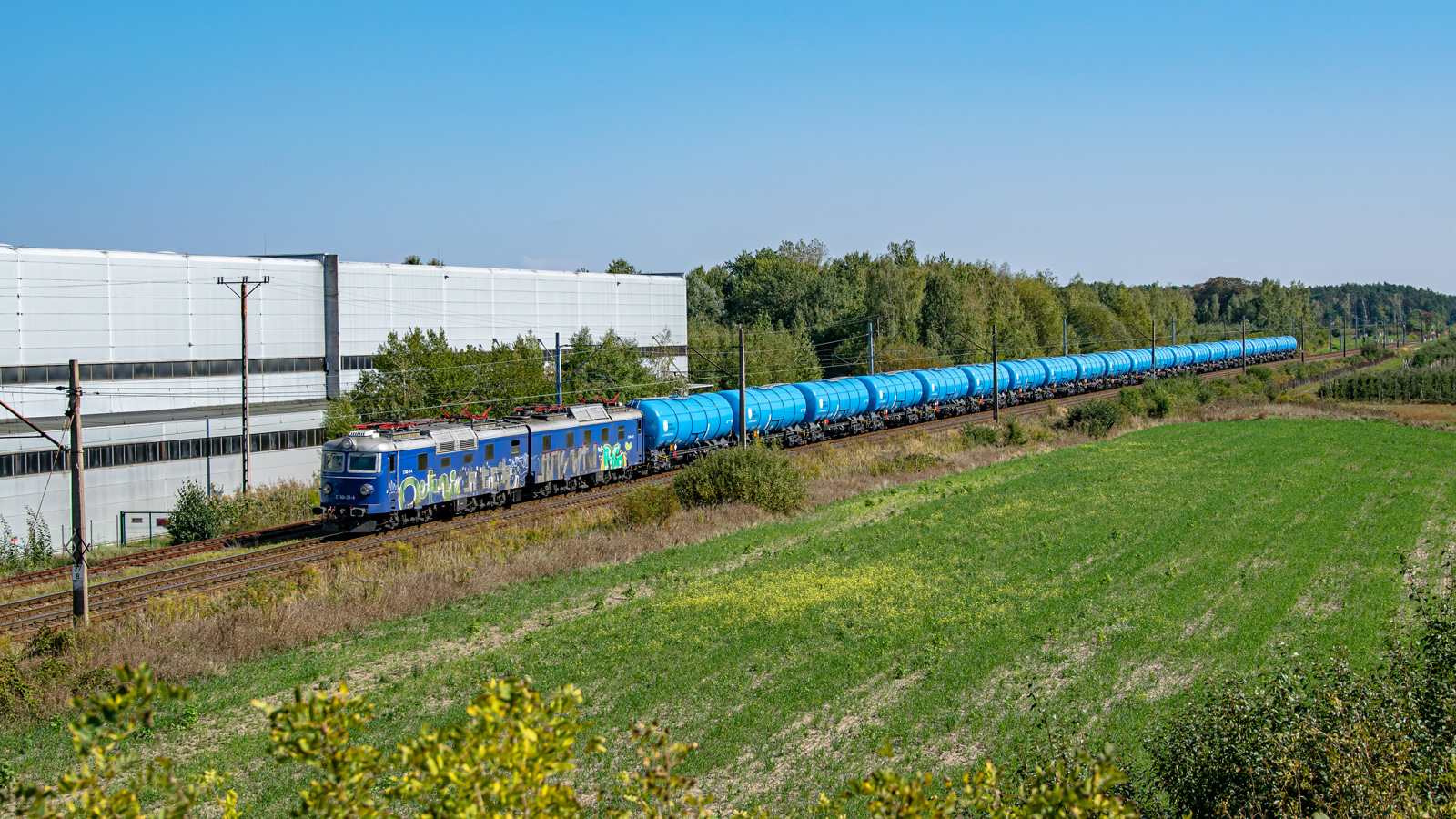 ET40-31 RC Trans ze składem cystern jedzie linią kolejową numer 12 "S-Ł" i zaraz wjedzie do Mszczonowa od Tarczyna.