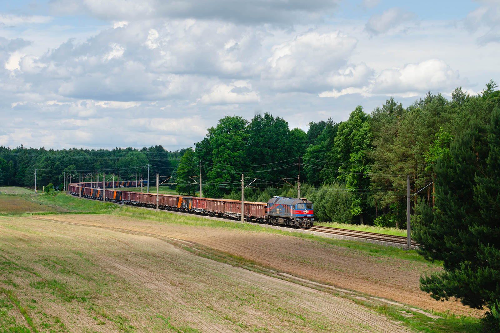 Próżny skład prowadzony przez M62-0837 zawija się po łukach w miejscowości Jelna, pociąg niedawno minął miejscowy przystanek osobowy tym samym zajmując szlak do Leżajska. Na tyle składu na zimno jedzie TEM2-156