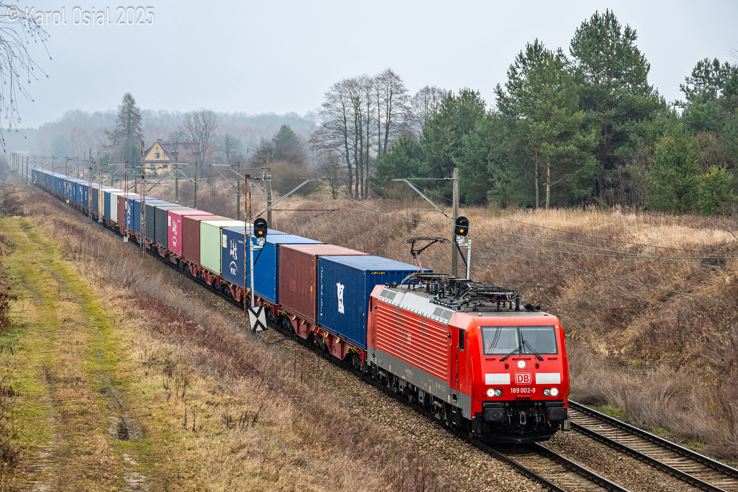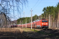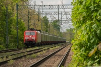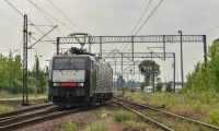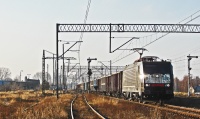 Eurosprinter ze składem kontenerów minął podg. Jaźwiny i jedzie esełką w kierunku Góry Kalwarii zajmując szlak do Osiecka.