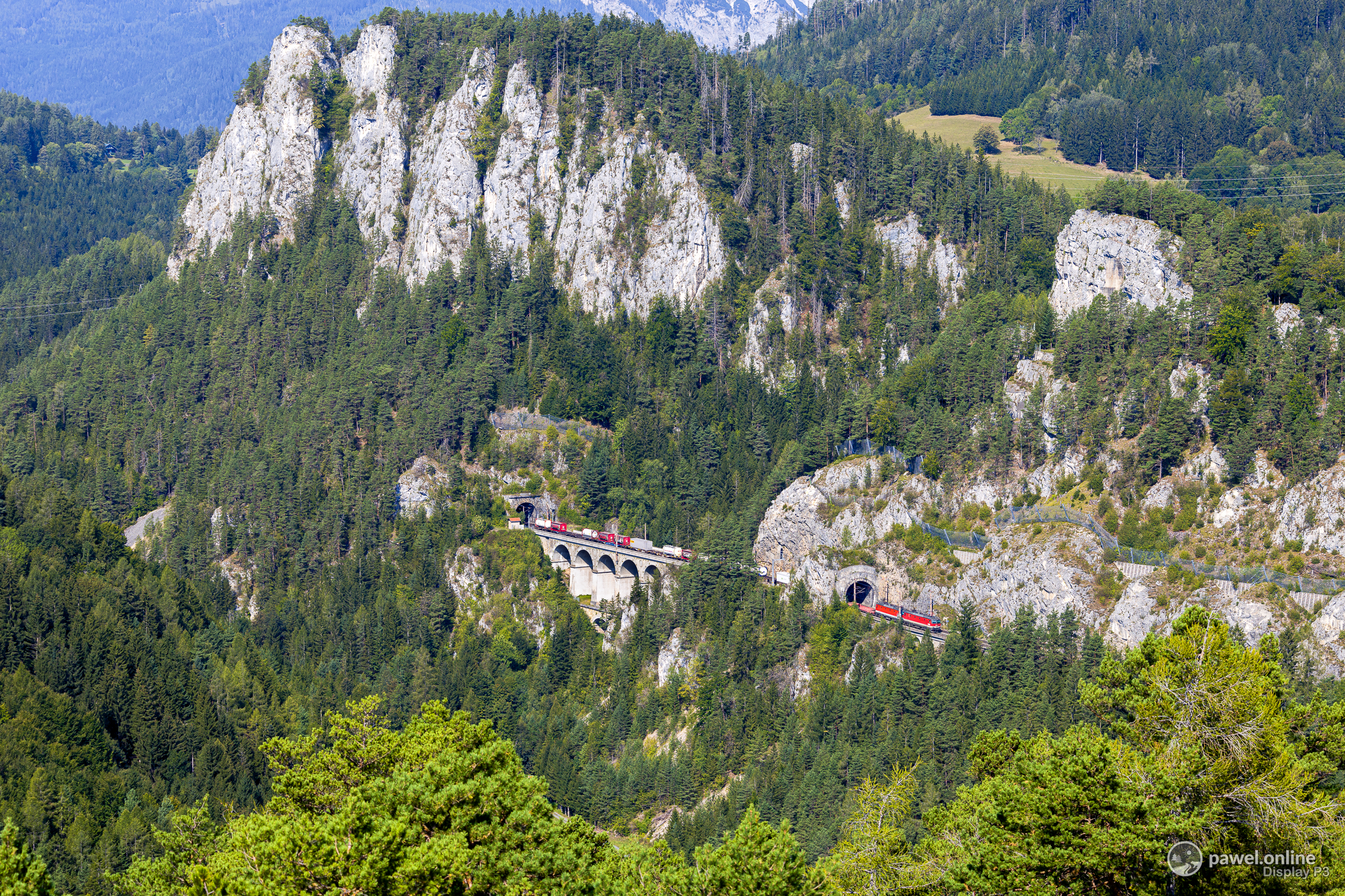 Duet klasyków OBB prowadzi mieszany skład najbardziej malowniczą częścią kolei Semmeringbahn pomiędzy Semmering a Breitenstein.