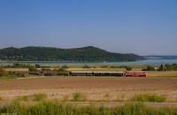 424.247 z R 6626 relacji Debrecen-Füzesabony przejeżdża przez most nad Jeziorem Tisza. Był to jeden z wielu pociągów uruchamiany 18 i 19 sierpnia w ramach retro weekendu.