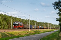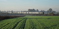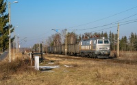 Byko z węglarkami niedawno wyjechał ze stacji Puszcza Mariańska i znajduje sie na jednotorowym szlaku do Mszczonowa.
