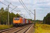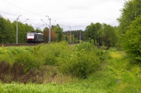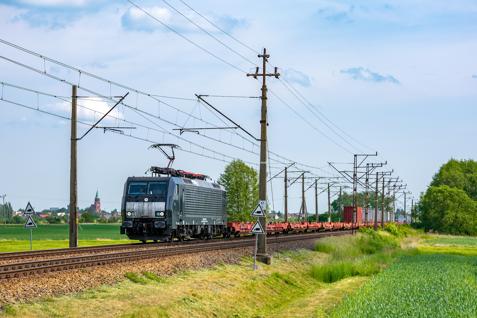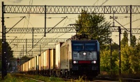 Eurosprinter w służbie LTG Cargo Polska z MRCE Dispolok z objazdowym składem platform z kontenerami i naczepami rel. Trakiszki - Rzepin opuścił przed momentem po krótkim postoju ścinawską stację jadąc szlakiem Ścinawa - podg Chełmek Wołowski w stronę Głogowa. Objazdy były spowodowane przez prace remontowe w okolicach Zbąszynka.