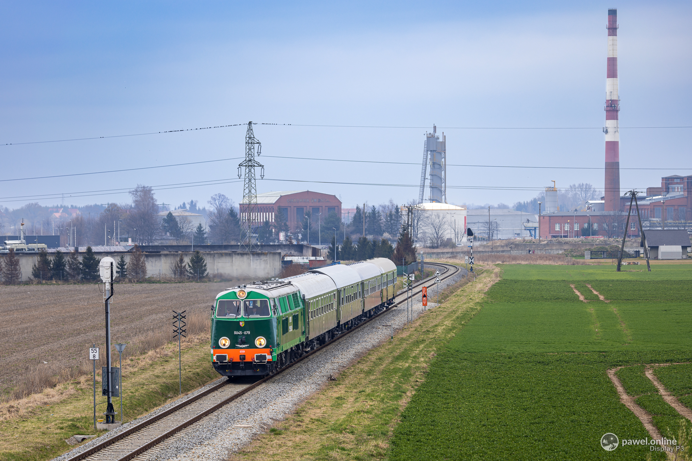 Fiat ze składem specjalnym KSK Wrocław z Wrocławia Głównego do Jedliny Zdrój przed chwilą wyjechał z Pszenna i mija tarczę ostrzegawczą semafora wjazdowego Świdnicy Przedmieścia
