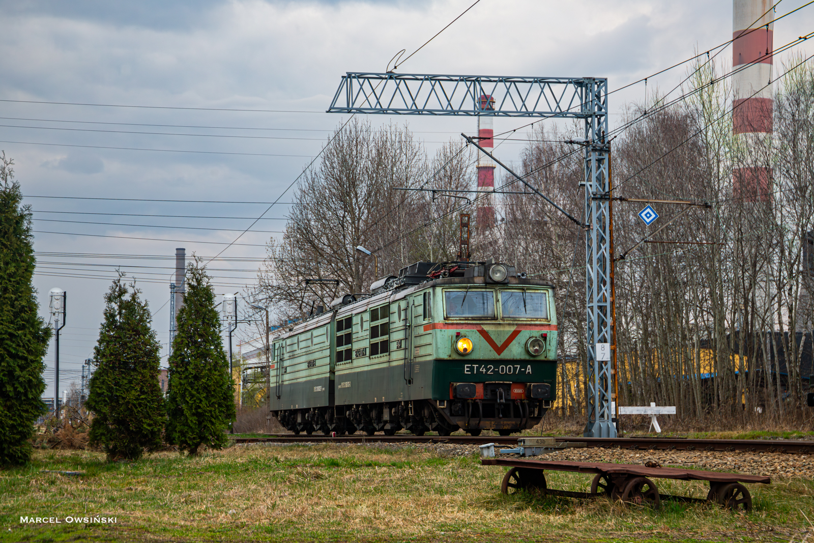 ET42-007 manewruje po stacji Łaziska Średnie po przyprowadzeniu składu węglarek z Dąbrowy Górniczej