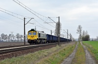 Lokomotywa Class 66180 z ładunkiem kontenerów wyjeżdża z Euroterminalu Sławków w kierunku stacji Sosnowiec Maczki.