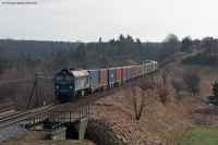 Tytułowa maszyna ze składem relacji Jawor - Mirosław Ujski jedzie szlakiem Trzcianka - Piła główna.