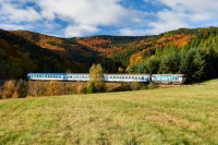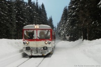 Pociąg specjalny "Čertovský vlak do Žacléře!" zestawiony z lokomotywy T334.0866, dwóch wagonów Balm i dwóch motoraków zbliża się do stacji końcowej Trutnov hlavni nadrazi. Był to drugi kurs ze stacji Žacléř.
