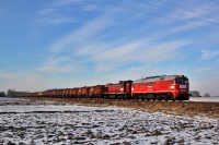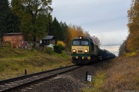 M62M-015 ze składem węglarek zbliża się do semaforów wjazdowych stacji Kamieniec Ząbkowicki. Pociąg jedzie docelowo do Piławy Górnej. W tle widać malownicze pasmo Gór Złotych.