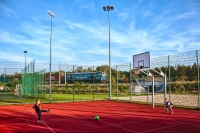 Hmm centralnie? Pociąg i owszem, ale czy podstawy fotografii mówią o umieszczaniu pociągu w złotych punktach? czy o umieszczaniu tam, ogólnie mówiąc, obiektów? Na powyższej fotce pociąg potraktowałem jako dodatek. Głównie chciałem pokazać tą małą oazę spokoju, która ożywa gdy nadjeżdża tabor.