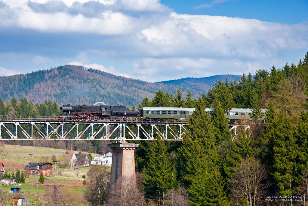 Na zdjęciu Ty2-911 ze specjalnym pociągiem relacji Kędzierzyn Koźle-Wałbrzych, wjeżdża na most za Nową Rudą Przedmieście i kieruję się w stronę Głuszycy.