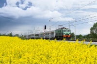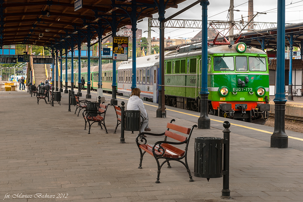 Fakt, dobre zdjęcie. Gdyby stanąc prostopadle do składu np: na linii wyznaczającej skrajna bezpieczeństwa to po prawej widzieli bysmy sama siódemke a z lewej same słupki od wiaty peronowej. Podoba mi się . Są gusta i guściki. Jednym sie podoba innym nie. 5