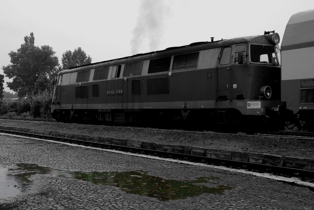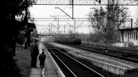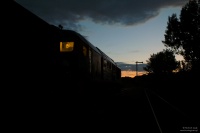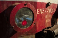 SU45-089 podczas deszczu opuszcza peron drugi stacji w Bogdańcu kierując się w stronę Kostrzyna n/O