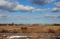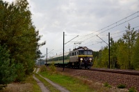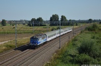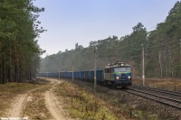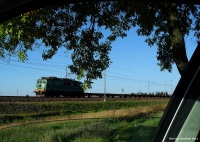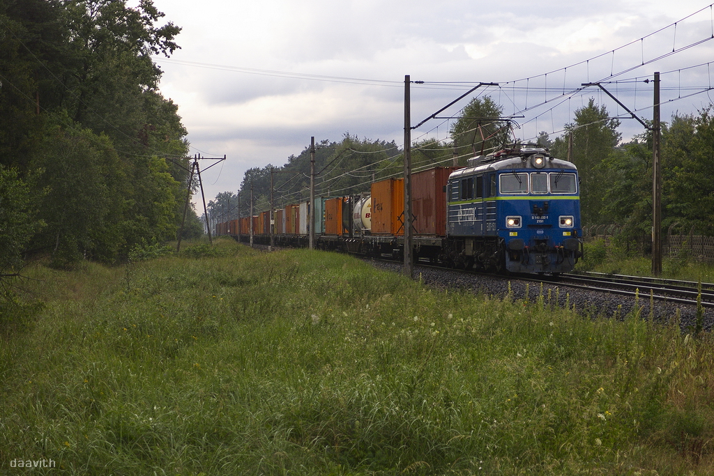 EU07-1520 ze składem kontenerów zbliża się do Antonina w dżdżyste sierpniowe popołudnie.