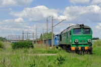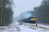 ST44-1232 z prawie jednolitym niebieskim składem Gagsów rusza w kierunku Kościerzyny spod semafora wyjazdowego na bocznym torze stacji w Gołubiu Kaszubskim. Efekty szybkiego obrotu nastawnikiem widać z komina. Kołomna została tu skierowana w celu przepuszczenia Regio na SA137 do Gdyni Gł.