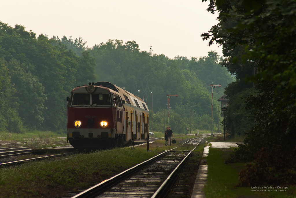 Patrze na zegarek, wskakuje na licznik 09:50 i nagle zza nastawni od strony Krzyża Wlkp pojawia się, najpierw prawa lampa, potem górna moim oczom ukazuje się napis na czole SU45-079 i lewa lampa. I co ??!! Nagle deszcz ustępuje, jakby nigdy nic. Koniec, wielkie zdziwko, katastrofa. Jak to ostatnie zdjęcie i mam je zepsuć, NIGDY !!! Szybka korekta ustawień, zdjęcie próbne i znów jestem w stawce.