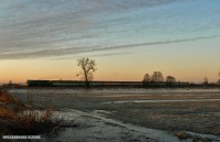 Nowe Drezdenko, ostatni fotostopowy przystanek tego zlotu. Pogoda była okropna, mocny deszcz, wszystko przemoczone, byłem pewien, że z nadjechaniem składu nic się nie zmieni. Po chwili naszedł pomysł, że można ten deszcz dobrze wykorzystać. Długi czas migawki około 1/4 s oraz mała przysłona i może być całkiem ciekawie.