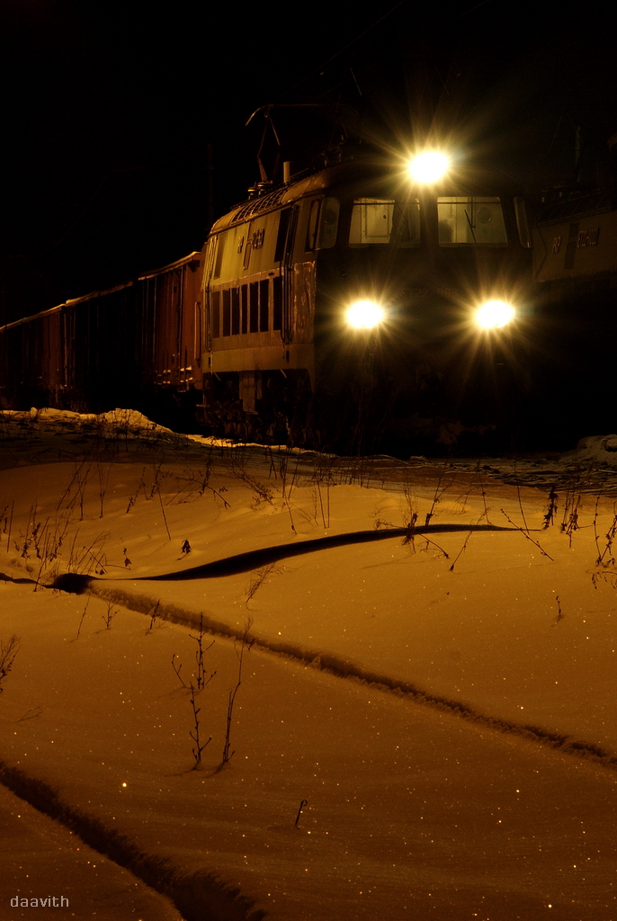 Zmęczony podróżą byk, odpoczywa pośród karmelowego śniegu.