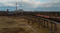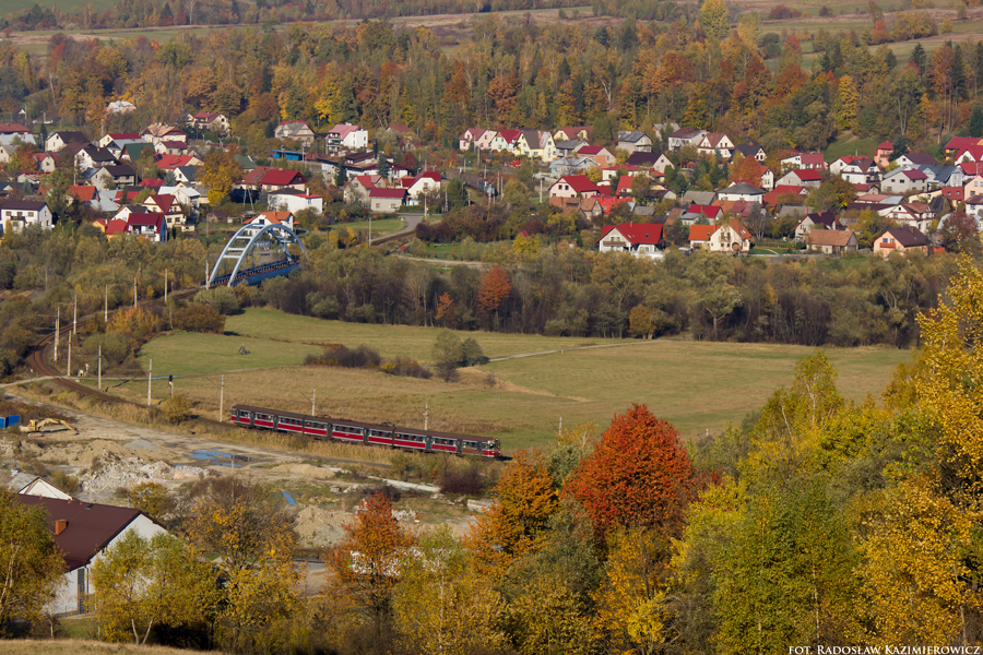 W tle można zauważyć pociąg towarowy, który oczekiwał ponad pół godziny zarówno na zwolnienie szlaku przez ów pociąg do Zwardonia, jak i na krzyżowanie z pociągiem do Katowic.