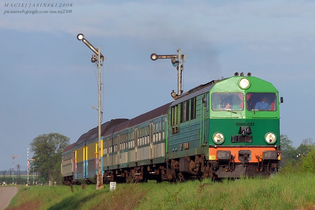 SU46-033 prowadzi paradowo wzmocniony osobowy 77425 relacji Wolsztyn - Poznań Główny.