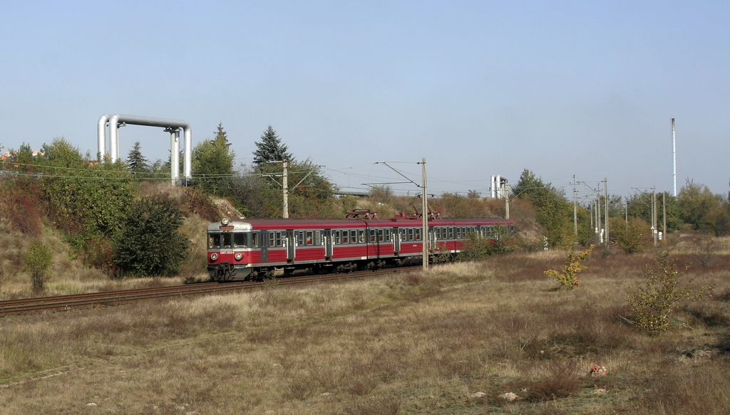 EN57-1072 jako regio z Wrocławia do Łodzi Kaliskiej opuścił właśnie stacje w Kaliszu i przejeżdżając przez wąwóz na osiedlu Zagorzynek , kieruje się do stacji docelowej .