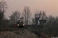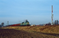 Pociąg zdawczy (6 węglarek) do Grudziądza opuszcza stację. Wagony akurat znajdują się na torze prowadzącym do Świecia.