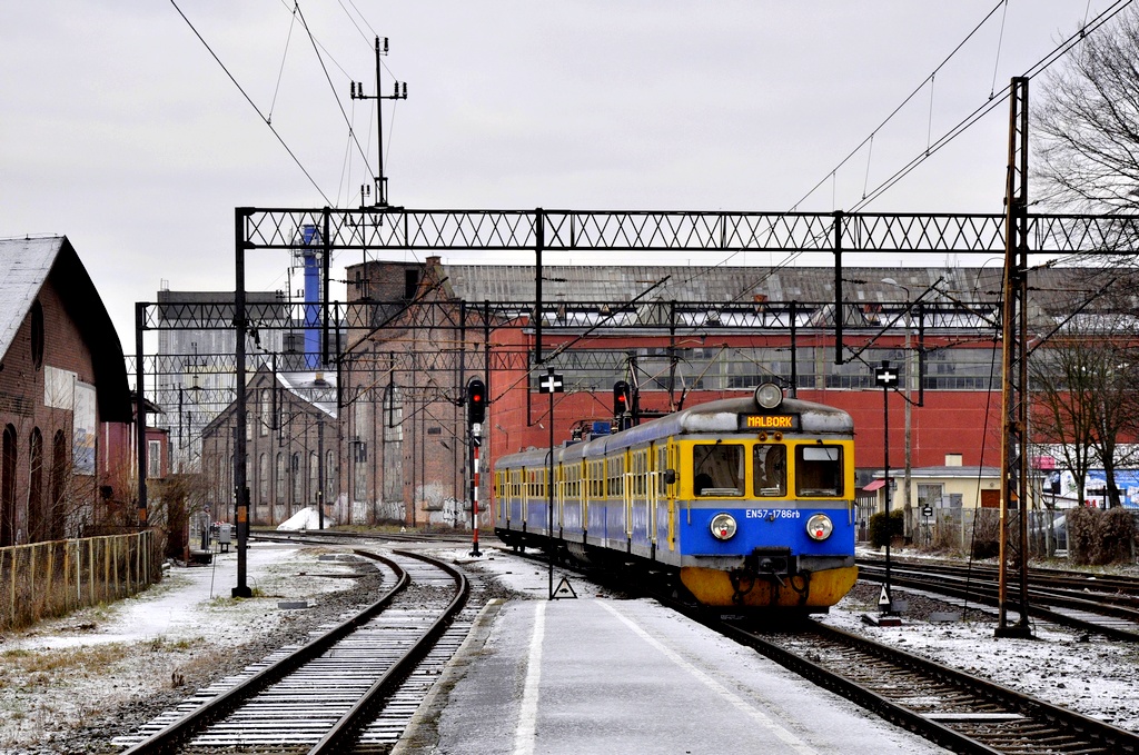 ElblÄ…g. Kibel Regio rel. ElblÄ…g-Malbork. W kadrze kibel opuszcza stacjÄ™ poczÄ…tkowÄ…
