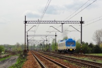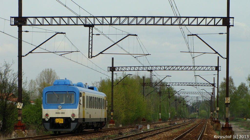 Tytułowa DeHa, SN82-002 podąża z pociągiem Kolei Śląskich, do Sławkowa, z Sosnowca Głównego, na szlaku Sosnowiec Dańdówka - S-c Kazimierz .