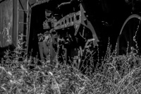Na zdjęciu "Prawdopodobnie" W byłych okolicach stacji, w krzakach, zapomniany wagon, który jeszcze się zachował. W czystym polu, widoczny wyraźnie z miejscowego monopolu...