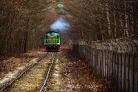 SM42-099 z TLK 88200 Szczecinianin zjeżdża na dół "siodła", w tle widoczny budynek przystanku Stary Borek. Zdjęcie zrobione z dawnego przystanku Korzystno.