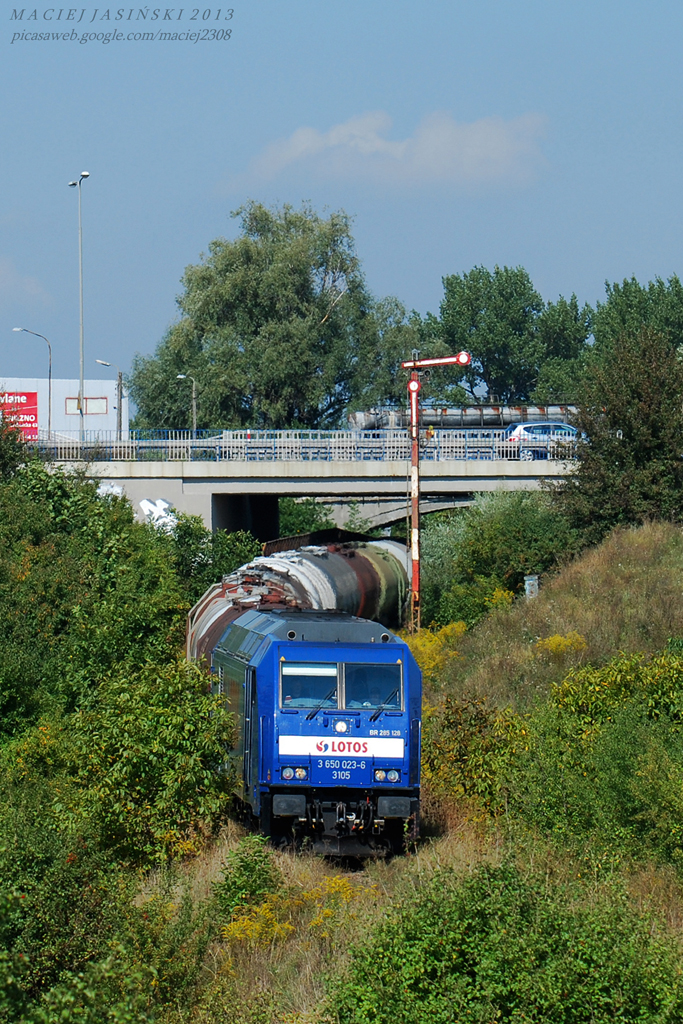Traxx wyjeżdża z próżnym składem w kierunku Gniezna mijając nieczynny semafor wjazdowy.
