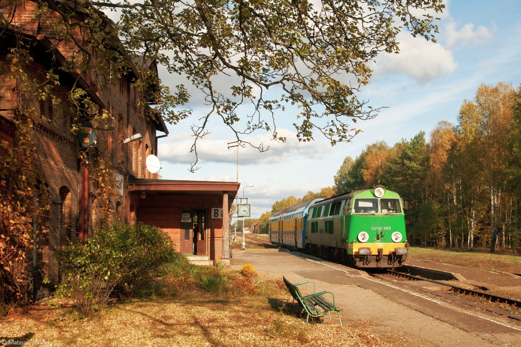 Tak, wiem, że już było, ale pozwoliłem sobie nieco poprawić obróbkę i wrzucić na nowo. Dlaczego? Ano dlatego właśnie, że Biernatowo to jedno z moich ulubionych miejsc. Piękny budynek dworcowy, drewniane ławeczki w cieniu starych drzew, w poczekalni czynny piec kaflowy oraz wiszące przepisy porządkowe z lat 50. XX wieku i resztki rozkładu jazdy z bodajże 1946 roku, a wszystko to położone w zasadzie pośrodku lasu. Właśnie to otoczenie sprawia, że bardzo lubię tam wracać, zwłaszcza w melancholijnych, jesiennych klimatach.