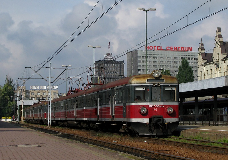 12.09.2009r- |Łódź Fabryczna| EN57-934 stoi przy peronie 3. Co ciekawe na tym samym torze (za tym kiblem) stał inny EN57. Jednostki nie były ze sobą spięte.