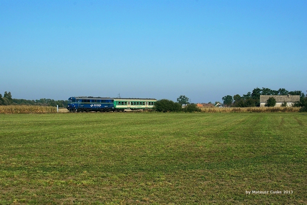Po korekcie doświetlenia wyszło bardzo fajne zdjęcie. Niezwykle zrównoważone i geometryczne, jakby rysowane od ekierki, z ciekawym i pewnie niezamierzonym akcentem w postaci krzaczora beztrosko zasłaniającego wagon i zaburzającego pedantyczny porządek sceny.