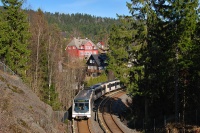 Pociąg po minięciu KMB jedzie w kierunku podg Psanewnik