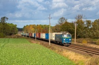 Dzień wcześniej trafiłem tego loka w Poznaniu z bardzo podobnym składem. Jechał w planie 484013 Czechowice-Dziedzice - Police Chemia. Być może to ten sam pociąg.