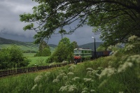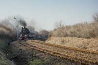 Chwilę później, gdy parowóz był bardziej widoczny, zwierzaki stały schowane w bezpiecznym miejscu, wyszłaby więc fota zza płota z połową parowozu i jakąś budą :)